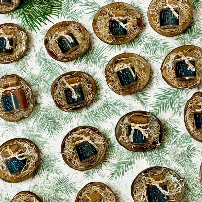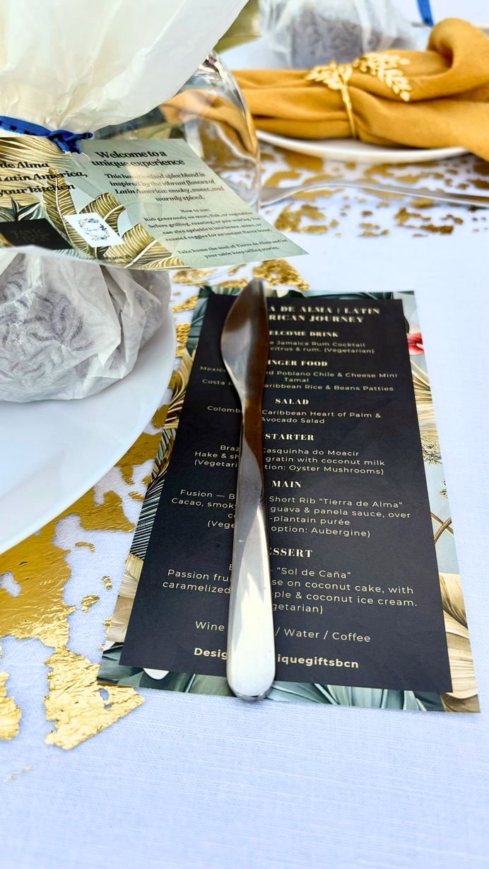 Me encargué de la decoración, packs de bienvenida, regalo de sorteo, tarjetas y póster. Taste Box se encargó de la parte de sommelier y Francisco del corte de jamón, creando juntos una experiencia completa para todos los sentidos.